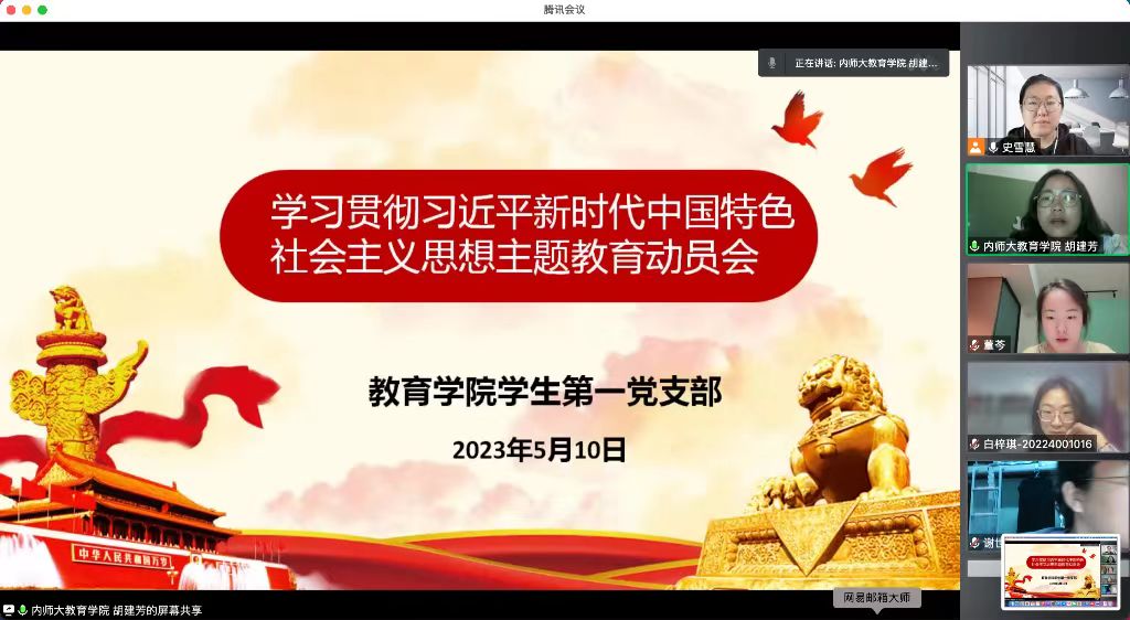 2023年5月10日至11日,yL23411永利集团学生第一支部和第二党支部先后在盛乐校区学院楼A406会议室召开主题学习教育动员大会,会议分别由第二支部书记胡建芳老师和第一支部副书记史学慧主持,两个支部的全体党员参加了会议。
