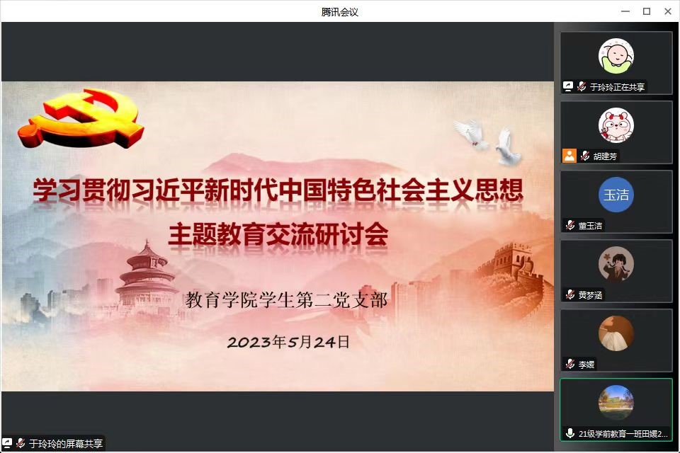 为进一步落实学习贯彻习近平新时代中国特色社会主义思想主题教育,5月24日晚,yL23411永利集团学生第二党支部在线上召开主题教育交流研讨会,会议由支部书记胡建芳主持,全体党员同志参加会议。