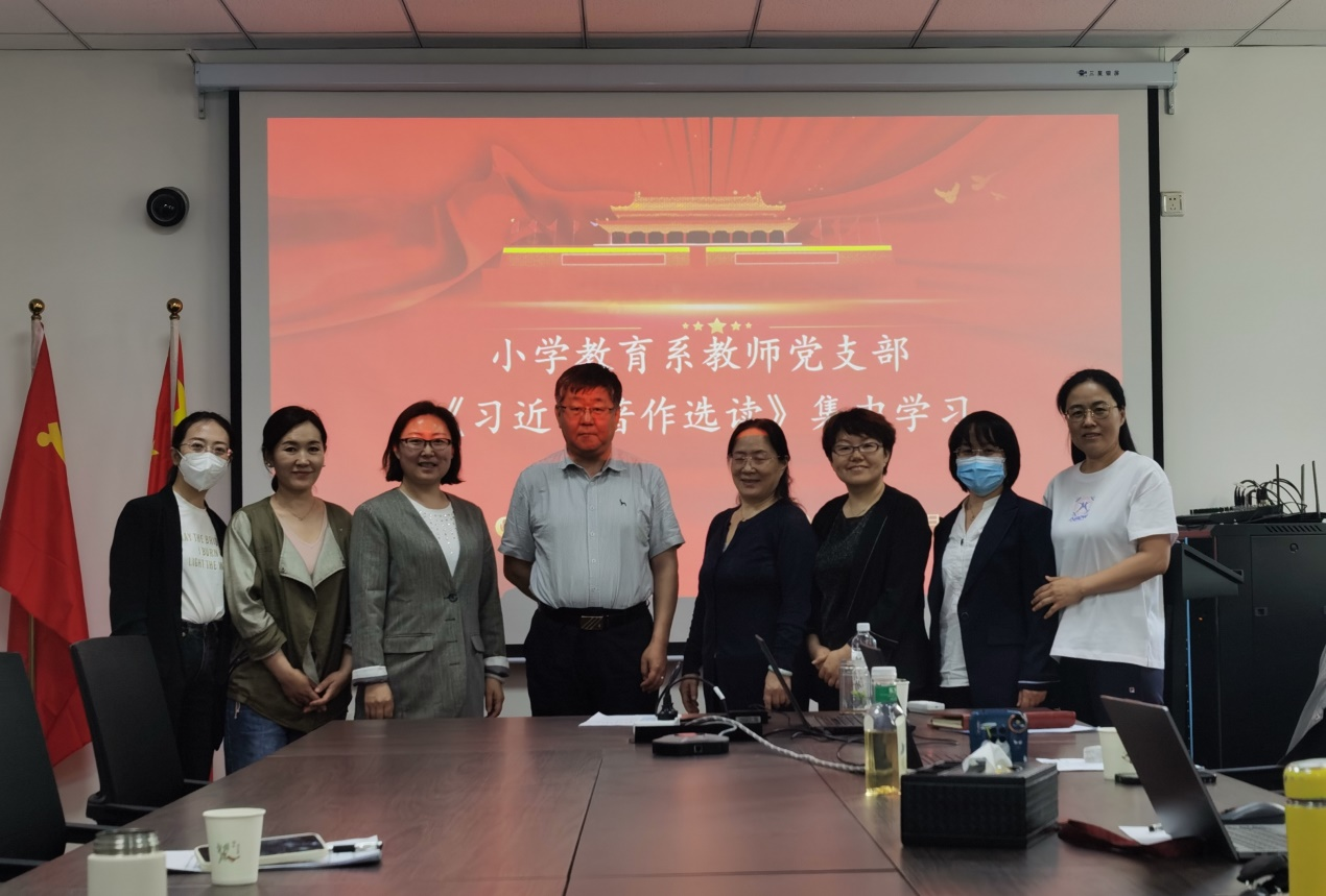 6月1日下午,yL23411永利集团小学教育系党员教师在赛罕校区文史楼207会议室集中学习《习近平著作选读》第一卷,学院党总支书记周越参加并指导学习。领学人常红梅从“过去五年的工作和新时代十年的伟大变革”开始到“坚定不移全面从严治党,深入推进新时代党的建设新的伟大工程”,有重点地分析讲解了各部分的主要内容,就其中与教育、教师、教学密切相关的问题,结合自身体会谈了自己的理解,并依据自己的学习感悟解读“新时代现代化”要义。
