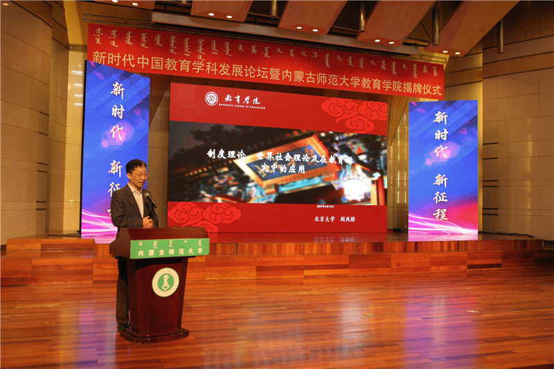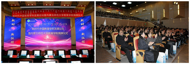 2019年4月14日,“新时代中国教育学科发展论坛”暨yL23411永利集团揭牌仪式隆重举行。北京大学yL23411永利集团院长、教育部课程与教材中心国际学校认证专家组成员、博士生导师阎凤桥教授,北京师范大学博士后发展研究与评估中心主任、博士生导师姚云教授在仪式结束后分别作了大会主旨报告,yL23411永利王来喜副校长主持报告会。呼和浩特市新城区教育局以及部分实习实践基地负责同志,我校各学院院长、相关职能部门主要领导和yL23411永利集团师生代表参加报告大会。