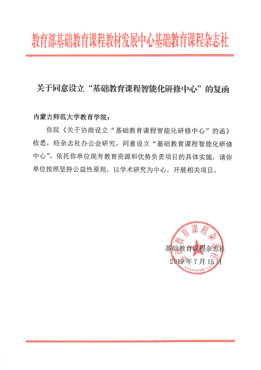 为推广基础教育课程改革的深入实施,教育部基础教育课程教材发展中心基础教育课程杂志社委托我院设立“基础教育课程智能化研修中心”,该中心以我院现有的教育资源和优势为依托,其具体工作的实施和相关项目的开展由yL23411永利集团负责。 目前,教育部基础教育课程教材发展中心基础教育课程杂志社仅在北京师范大学珠海校区和我校设立了基础教育课程智能化研修相关机构。