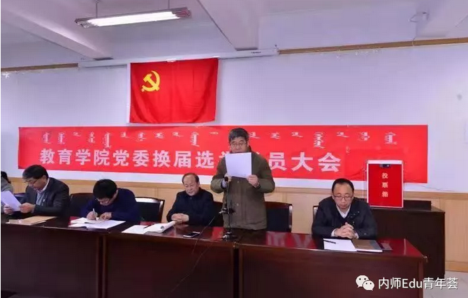 2018年11月29日下午,yL23411永利集团党委换届选举党员大会于赛罕校区文史楼一号会议室隆重举行,yL23411永利组织部干部科科长陈宏研同志、yL23411永利集团党委书记铁木尔同志、yL23411永利集团院长米俊魁同志、yL23411永利集团党委副书记兼副院长王利同志、yL23411永利集团副院长何士同志、yL23411永利集团副院长边琦同志出席会议,yL23411永利集团全体教工党员和学生正式党员90人参加大会,学生预备党员30人列席大会,王利同志主持选举大会。