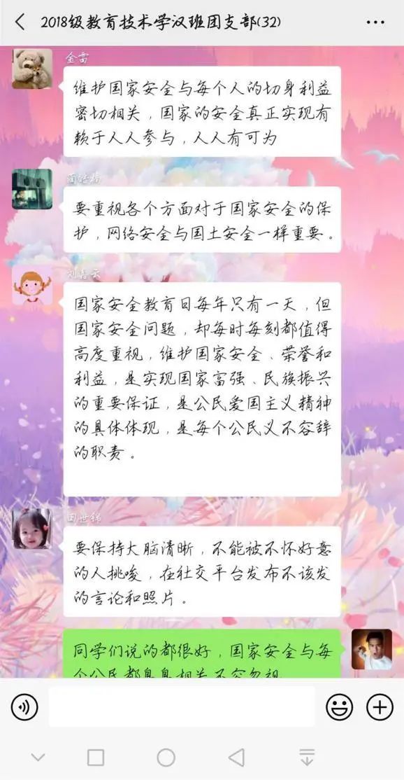 此次的团日活动,让我们意识到维护国家安全, 人人都是主角,国家安全不仅仅是国家的责任,更是我们每一个青年的责任。我们也应该为国家安全而努力,不断提高国家安全法治宣传的影响力和传播力!