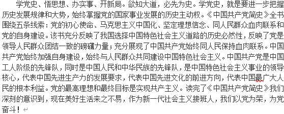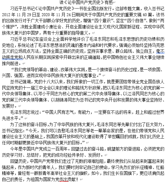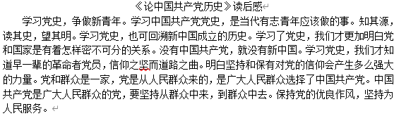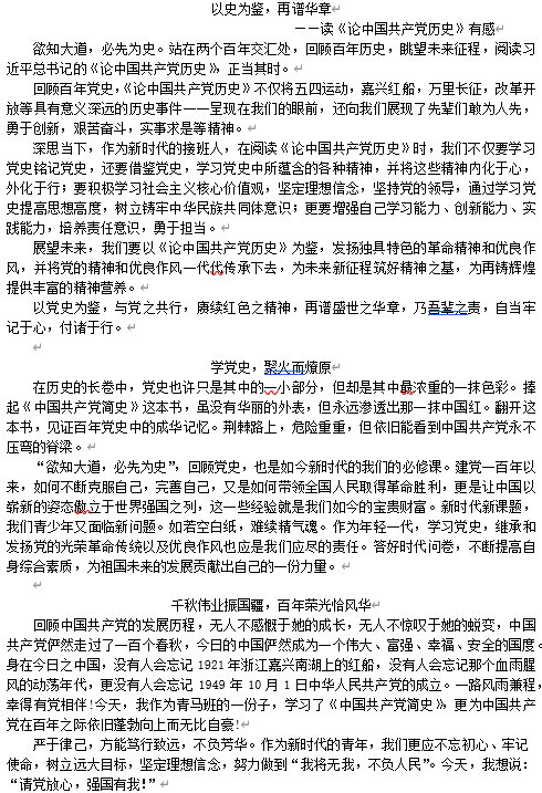 本次党史学习教育使广大青年进一步凝聚思想共识、坚定道路自信、增加党性修养。只有上好“党史”这门必修课,聆听百年历史回声,才能激荡出奋进新征程的时代强音。