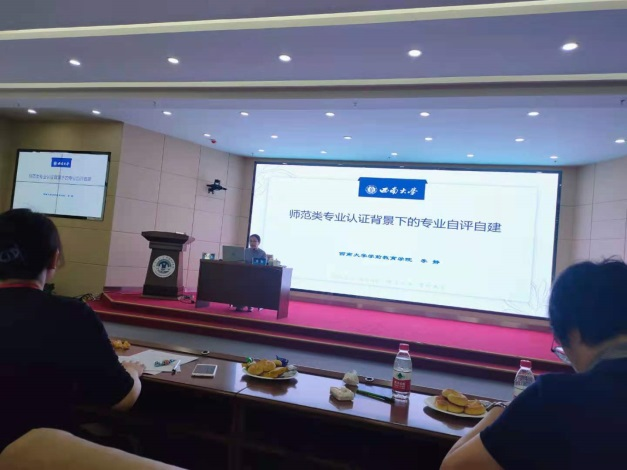 李静作了《专业认证背景下学前教育专业的自评自建》的主旨报告。李教授从认证理念、认证指标、三个产出的角度,深入浅出地讲解了学前教育专业培养目标、毕业要求的制定,以及课程体系的构建及课程教学的实施,并总结了紧扣培养目标与培养效果的达成度、专业定位与社会需求的适应度、教师及教学资源的支撑度、质量保障体系运行的有效度、学生和用人单位的满意度等认证重点。