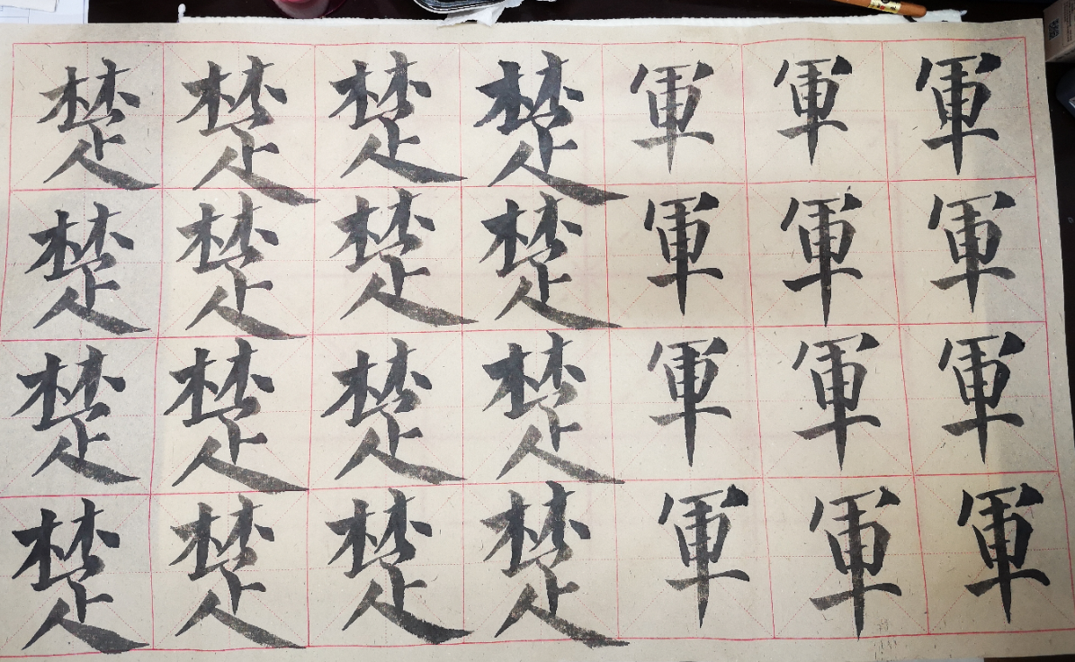 不过,令我感觉到最开心也是最见成效的进步就是我的书法,一个月我已经得到了我的指导老师以及其他老师的认可。我希望,同时也是我给自己定的一个目标,我要让我的硬笔和软笔书法无论走在哪,都是我自己的代名词。(图三、图四)