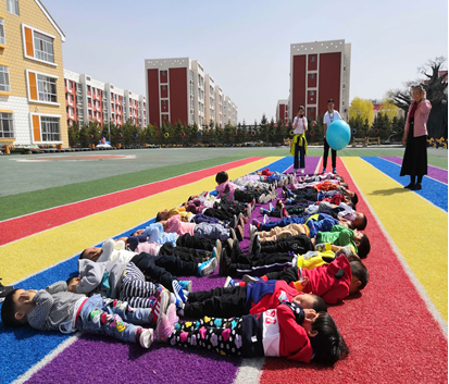 阳光明媚的早晨,吃过早点后孩子们出来进行锻炼。爬山洞,过小溪,跨高山~