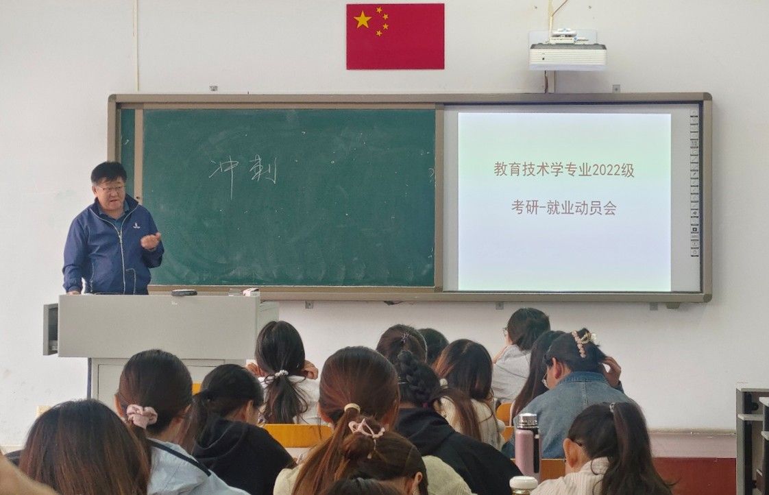 为帮助2022级本科生明确未来发展方向,教育技术学系于9月16日在科技楼组织召开考研与就业动员会。yL23411永利集团党委书记周越、副院长边琦、系主任李娜、学就办胡建芳参加动员会,就当前就业形势与升学备考提出针对性建议。