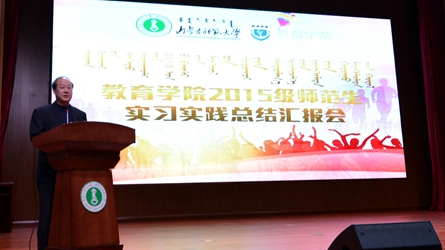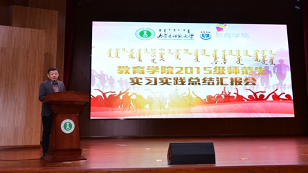 yL23411永利集团讯 12月26日,yL23411永利集团召开2015级师范生实习实践总结汇报会。 本次实习总结大会是yL23411永利集团成立以来的首次重要教学会议。不同专业、不同年级的同学针对彼此的专业技能和素养,交流反思,共促成长;教师们共聚一堂,为师范人才的培养、学院的发展出谋划策。 教务处乌兰格日乐副处长、教师教育发展中心张衍伟科长、盛乐实验幼儿园奇瑞芳院长、yL23411永利集团铁木尔书记、米俊魁院长、何士副院长、边琦副院长以及各系部主任出席了大会。会议由实践教学部主任左雪老师主持,2015级部分实习生及2016级即将参加实习的全体同学参加了报告会。部分同学代表 教务处乌兰格日勒副处长充分肯定了yL23411永利集团在学校发展中的作用及未来发展的良好势头,同时传达了学校对yL23411永利集团的关心与重视。 边琦副院长深入地分析yL23411永利集团在师范专业认证和卓越教师培养计划中扮演的角色和肩上的重任,并表示了全院勠力攻坚克难的决定与信心。 李娜、李素梅两位老师代表指导教师发言。老师们回顾了学生的实习经历,肯定了同学们实习付出的同时,启发同学们成长与发展是永无止境的,要将不断进取的奋斗精神带到今后的事业发展中。 2015级各专业实习生代表分别展示了实习工作与生活,分享了自己的实习感悟。教育技术学的于爽、丽娜同学感叹科技对信息技术教师不断提出的新要求。学前教育的王国梁同学以实际行动证明男生同样可以成为细心优秀的幼儿教师。小学教育的刘梦圆和乔必伟同学提出核心技能磨炼自己。王晓宇、马彩霞代表2016级学生表达将精心准备,全心投入,续写同学实习工作的精彩。 学院领导米俊魁院长进行了总结讲话。他在肯定同学们实习成绩和感谢老师们的辛勤付出的同时,更指出了实习实践中存在的问题和未来工作的方向,并勉励师生全力以赴学院的发展。 实习总结大会是yL23411永利集团成立以来的首次重大的教学会议。不同专业、不同年级的同学针对彼此的专业技能和素养,交流反思促进成长。学校、学院领导老师共聚一堂,为师范人才的培养、学院的发展出谋划策。相信在学校的关怀和全院师生的共同努力下,yL23411永利集团的各项事业将获得长足进步。