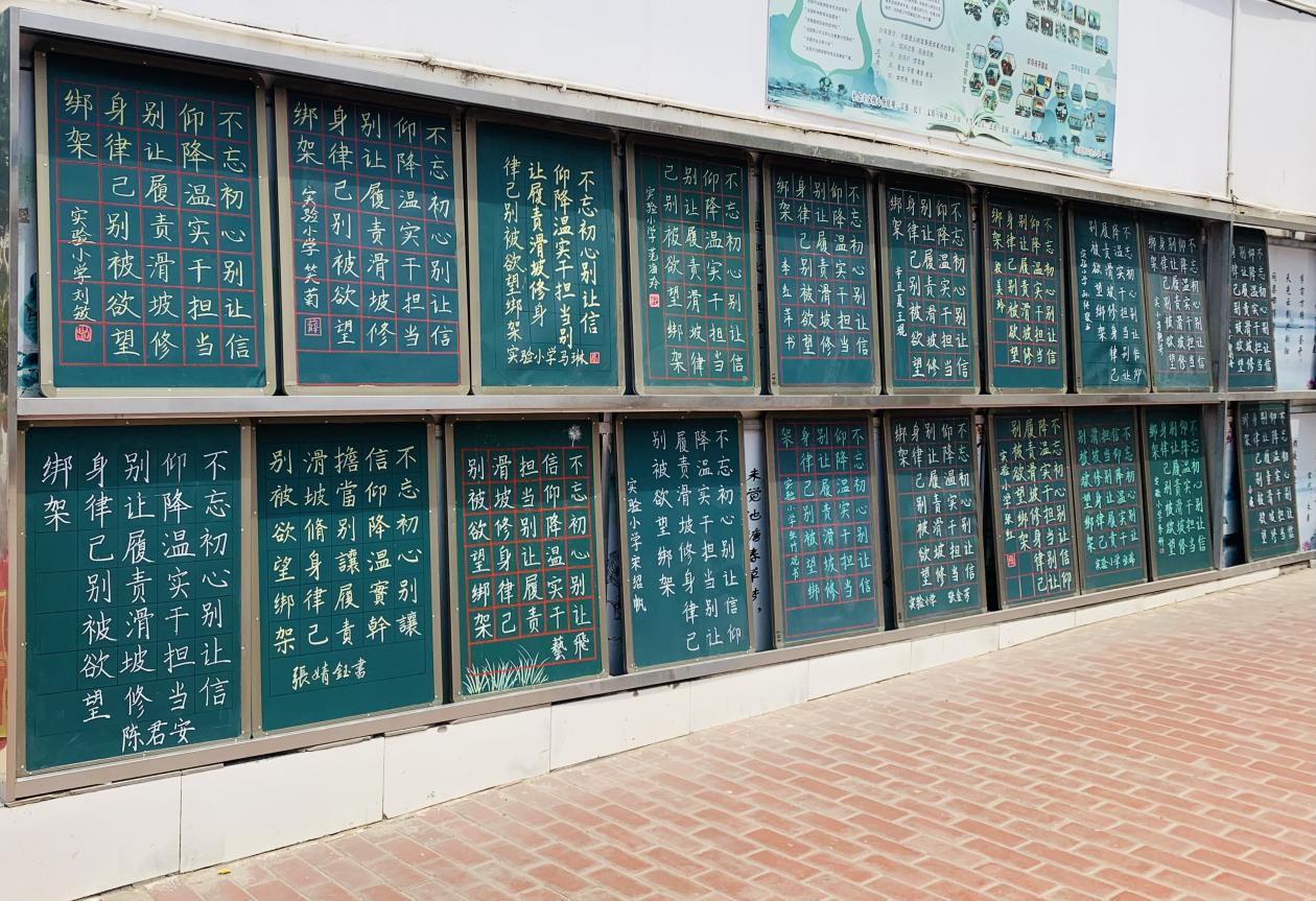 回顾四个月前,她刚一进入乌海市实验小学,就被仿古样式的教学楼与古朴的兰亭影墙吸引了。学校不愧为“中国书法兰亭小学”,校园内随处都可欣赏到师生的书法作品,语文教师更是每天严格落实一节课的写字训练。有了大学期间的写字课程、二课堂及社团活动,再加上实习学校浓厚的书法文化氛围,张婧钰同学的粉笔字、钢笔字和毛笔字都得到了巨大的提升。
