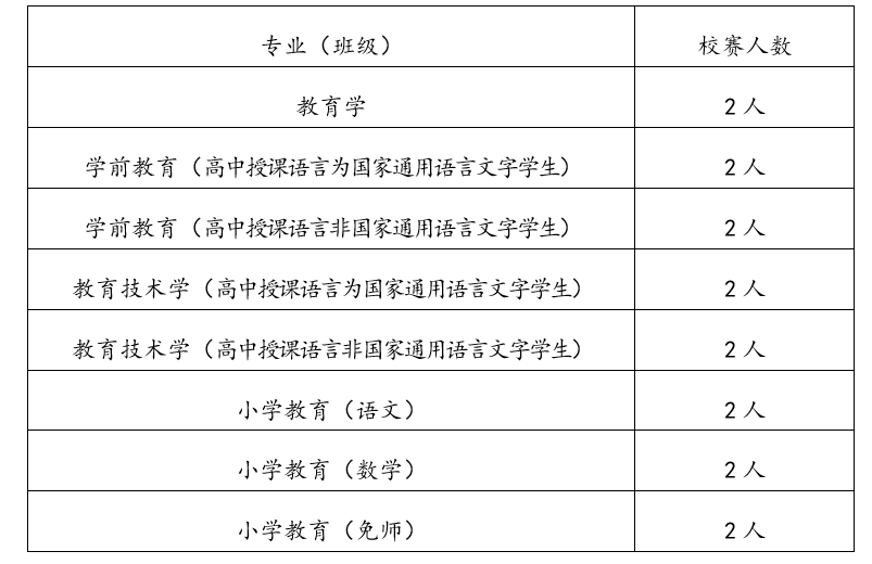 3.参照校赛程序组织大赛,遴选出参加校赛的学生(各专业遴选参加校赛的学生名额见附表)。