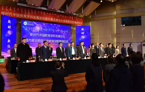 4月14日, 我校举行新时代中国教育学科发展论坛暨yL23411永利集团揭牌仪式。北京大学yL23411永利集团院长、教育部课程与教材中心国际学校认证专家组成员、博士生导师阎凤桥,北京师范大学教育学部副部长、教育部高等学校教育技术专业教学指导分委员会副主任委员、博士生导师李芒,中央民族大学yL23411永利集团党委书记、省部级人文社科重点研究基地主任、博士生导师苏德毕力格,西北师范大学yL23411永利集团党委书记苏丽蓉,海南师范大学教育科学研究院院长、海南教育改革与发展研究院主任李振玉,首都师范大学yL23411永利集团副院长、博士生导师朱晓宏,北京师范大学博士后发展研究与评估中心主任、博士生导师姚云,呼伦贝尔学院党委书记韩猛,内蒙古财经大学副校长王立,自治区教育厅教师教育处处长武秀珍,自治区教育厅科学技术与信息化处处长朱广元,自治区教育厅高等教育处处长安利民,自治区教育信息中心主任田永健,自治区教育科学研究所所长刘彦泽,我校党委书记黄雅丽,副校长张海峰、刘九万、赵东海、王来喜教授等出席仪式。仪式由赵东海主持。