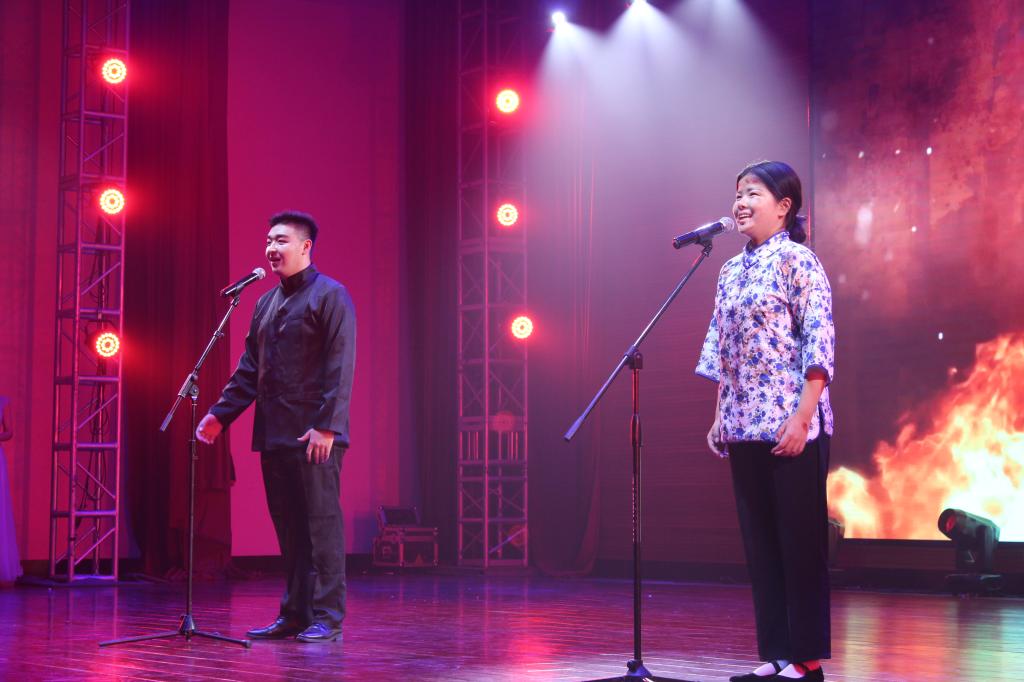 晚会节目精彩纷呈,于洋老师演唱的歌曲《红旗颂》,学前与公管特教党支部全体教师合唱的歌曲《让我们荡起双桨》、《没有共产党就没有新中国》,阿里马斯老师演唱的歌曲《余香》,张健老师演唱的歌曲《玛依拉变奏曲》博得了阵阵掌声,将晚会推向了一个又一个高潮;17、18级同学共同演绎的情景剧《秋瑾》,声行并茂,感人至深;18级、19级同学合唱的歌曲《国家》、《我和我的祖国》,将歌声融入时代旋律,体现了yL23411永利集团学子的家国情怀与赤子之心!