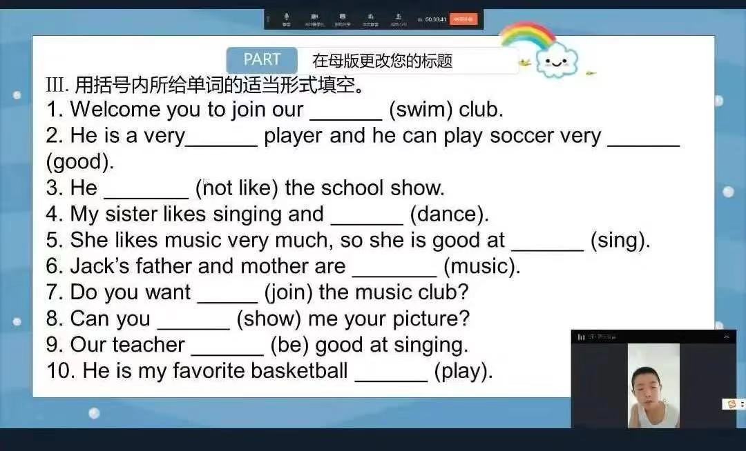 3.学生做题速度还可以,基础也不错,上课互动性很强,后面几天知识点的讲解速度对可以适当加快。