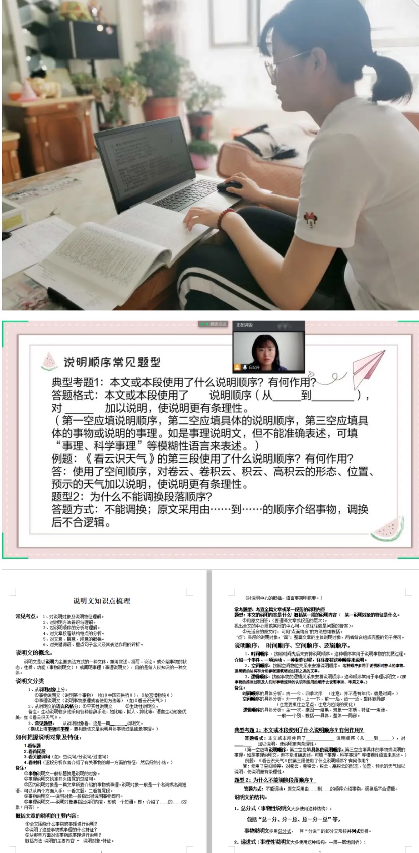 作为一名在校大学生,将理论与实践相结合,以此来服务社会是我们的追求。而此次“三下乡”活动便是给了我学习与进步的机会。因为疫情影响,这次活动只能以网上教学形式展开,但正是这种别出心裁的的教学方式,使我能拓展自己的知识面,将传统教学与网络教学相结合。我所教授的是初中语文,共分为两大种,六小类展开讲解: