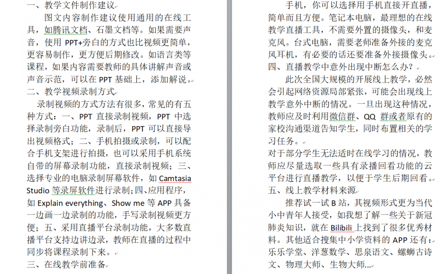 书写四页宣讲稿,细心总结线上教学容易出现的问题及解决措施,为云端三下乡保驾护航。“此次全国大规模的开展线上教学,必然会引起网络资源局部紧张,可能会出现线上教学意外中断的情况。一旦出现这种情况,教师应及时利用微信群、QQ群或者原有的家校沟通渠道告知学生,同时布置相关的学习任务。对于部分学生无法适时在线学习的情况,教师应尽量选取一些具有录播回看功能的云平台进行直播教学,以便于学生后期回看。”