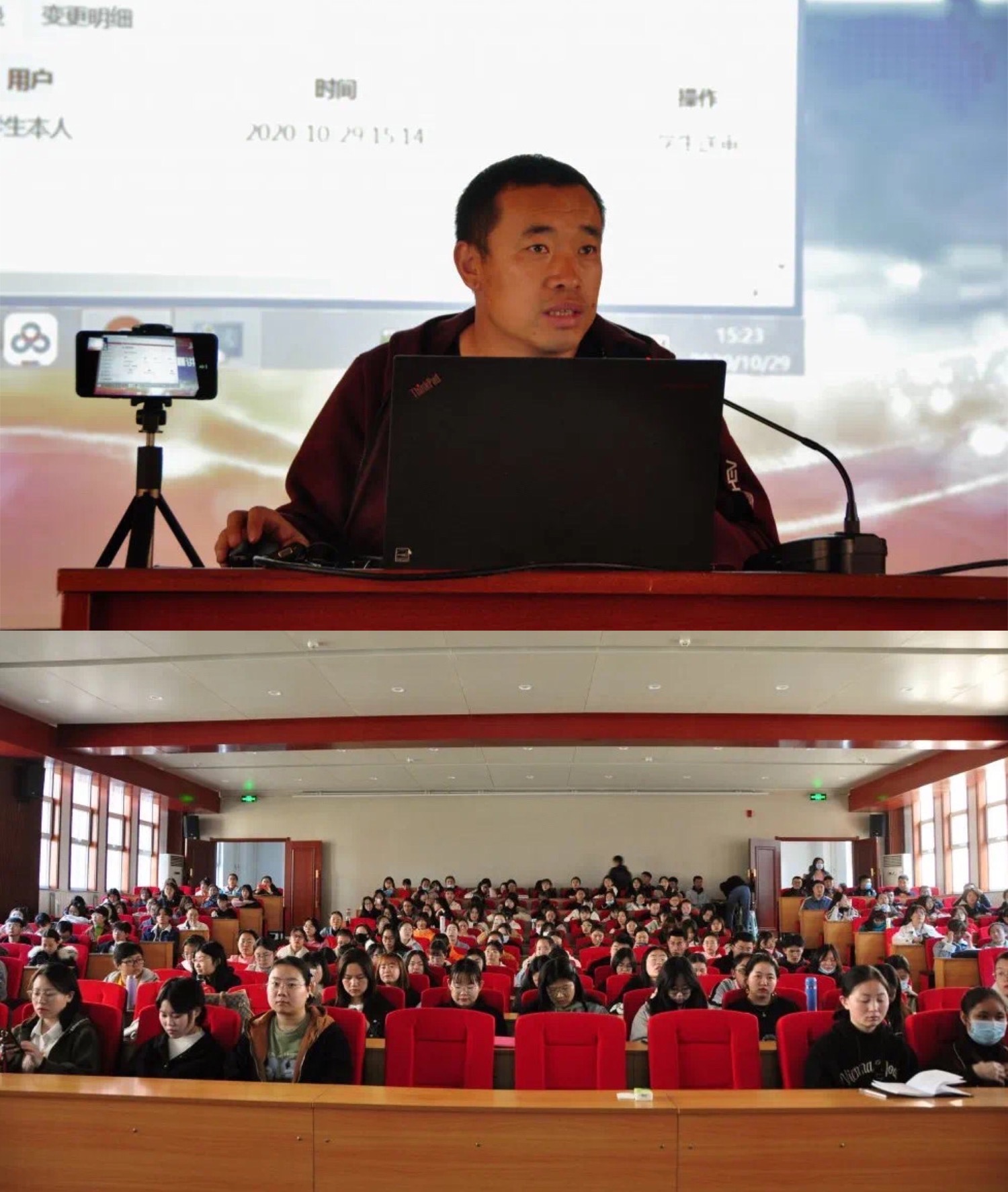 学工组于国佳老师强调此次活动在网页版进行,并推荐北疆就业微信公众号来辅助同学们核对、填写信息,叮嘱同学们要记住网址,重申毕业后身份信息的重要性。