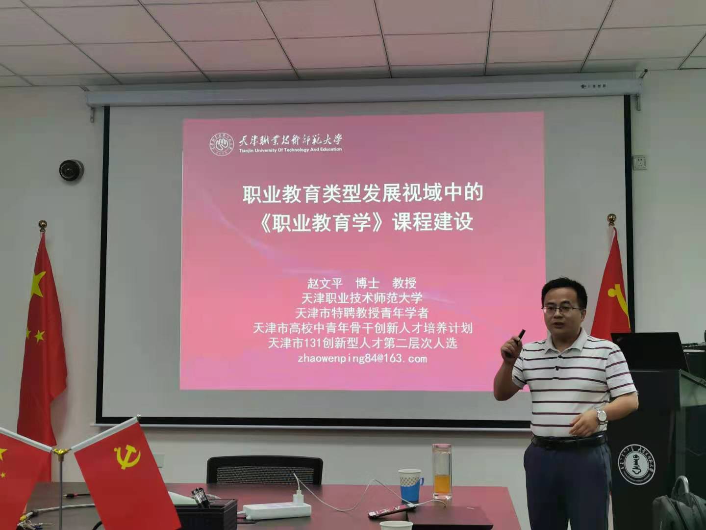 赵文平教授从“职业技术师范大学”、“职业教育学科发展”以及“中国职业教育体系”发展和建构的历程说起,勾勒出职业教育学的学科面貌,并在此基础上阐释了《职业教育学》课程建设的理论。此外,赵教授还慷慨分享了本门课程的课程与教学资源,并表示将继续关注我院相关课程建设情况。