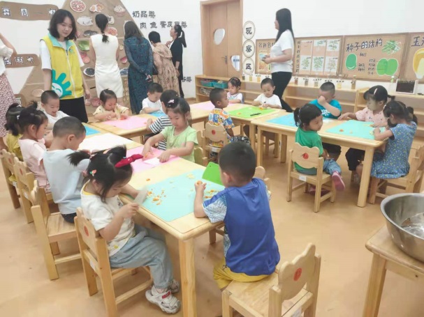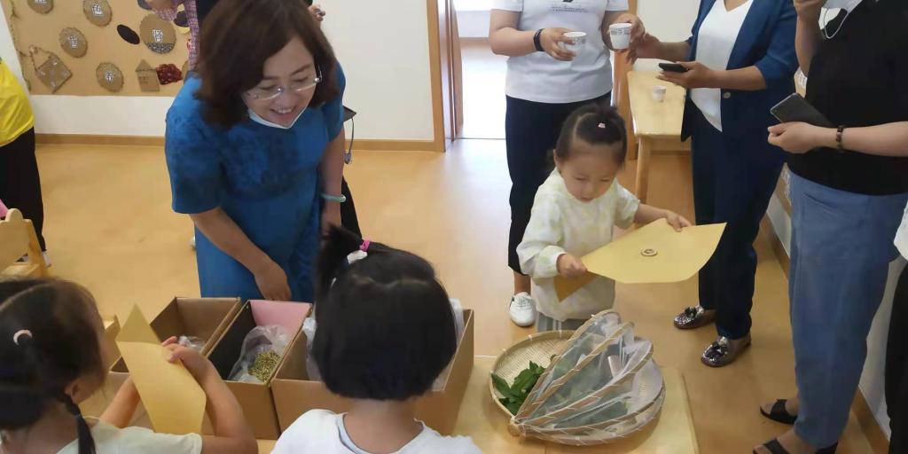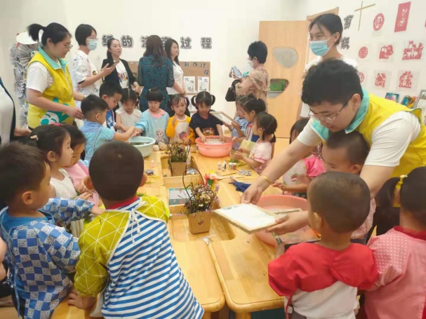 活动的第二站是老牛儿童探索馆附属幼儿园,老师们参观了幼儿园的户外活动、Remida工作坊和传统文化长廊,近距离感受了园本课程的建设与落地。在参观的过程中,老师们对“纸博物馆”的幼儿自制“花草纸”、“食育坊”的“美味土豆饼”、“中医馆”的自制脉动、“Remida工作坊”的扎染活动,以及户外体能器械锻炼、沙池寻宝、穿越黑洞等活动,进行了深入细致的观察、互动和体验。