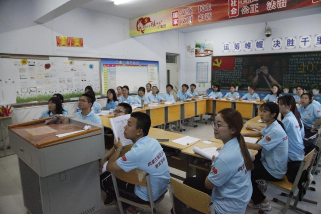 7月19日晚18:30,yL23411永利集团“三下乡”志愿者服务队师生在准格尔旗第九中学综合楼一楼教室深入学习贯彻习近平总书记“七一”重要讲话精神。