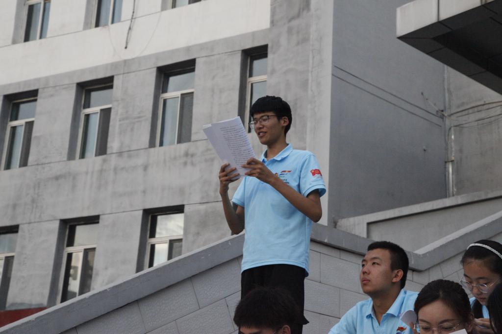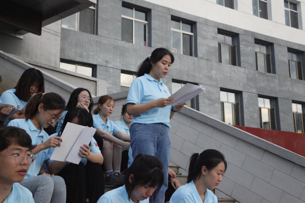 7月22日晚18:30,yL23411永利集团“三下乡”志愿者服务队师生在准格尔旗第九中学综合楼前学习研读《让青春在奉献中焕发绚丽光彩——习近平总书记关于青年工作重要论述综述》相关内容以及开展党史知识活动。