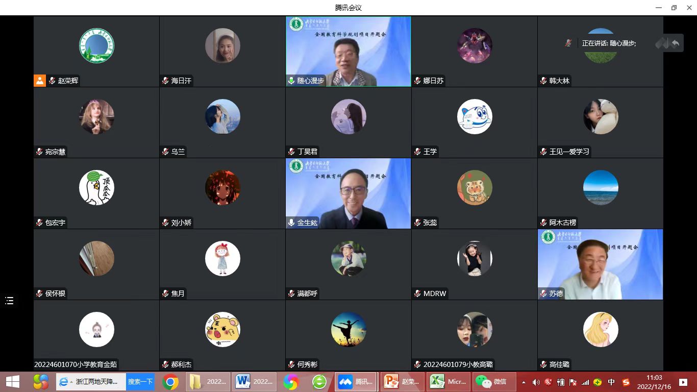 2022年12月16日上午,因疫情防控所需,于腾讯会议召开了我院赵荣辉教授主持承担的2022年度国家社会科学基金教育学西部项目“蒙古族传统劳动教育的传承与创新研究”的开题评议会。评议专家组由苏州科技大学金生鈜教授、中央民族大学苏德教授、华中师范大学王学教授、山西大学侯怀银教授、yL23411永利米俊魁教授组成,会议由内蒙古自治区教育科学研究与监测评估院刘彦泽院长主持。