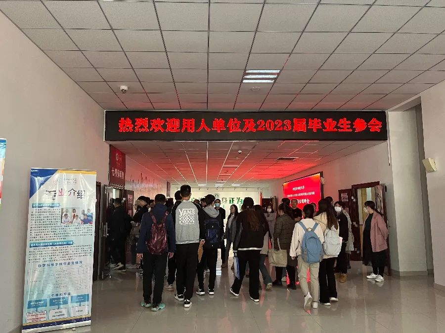 我院辅导员和毕业班班主任组织2023届各专业毕业生有序进场,学生会与团组宣成员分散在会场出入口,进行积分签到、指路引领、问题反馈等工作,确保招聘会有序进行。