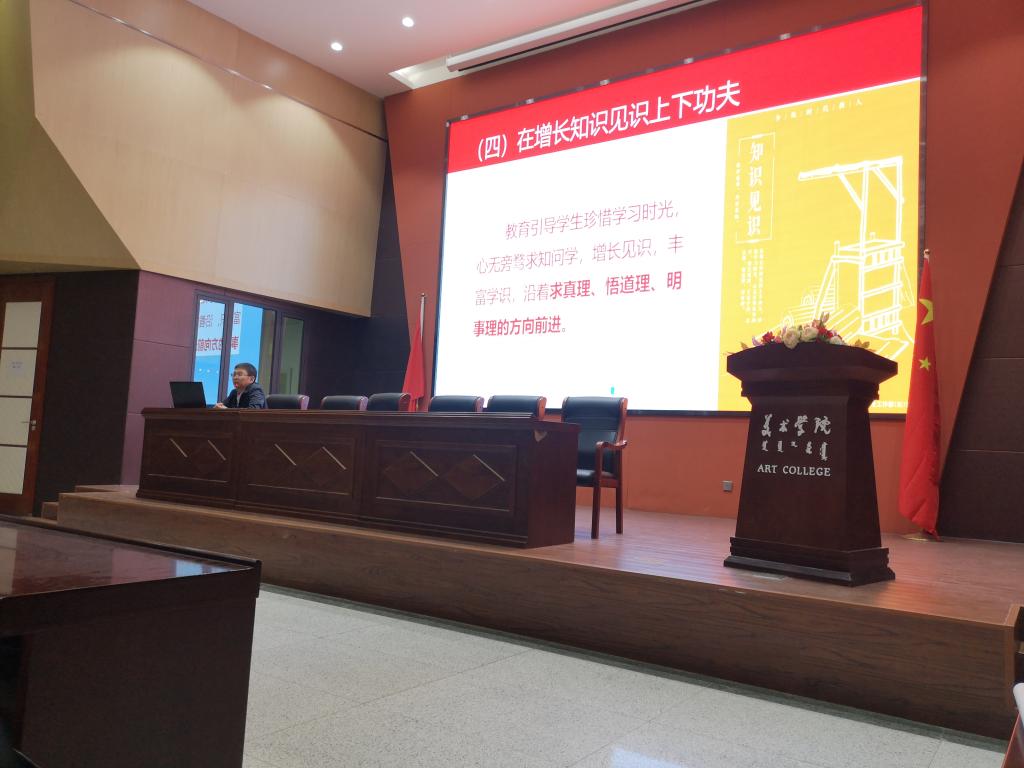 2023年5月22日,yL23411永利集团党委副书记兼副院长斯琴满都呼老师在美术学院报告厅为yL23411永利集团、美术学院积极分子讲授《习近平总书记关于培养全面发展人才的重要论述》专题党课。本次党课由yL23411永利集团学生第三党支部支部书记张玉主持。