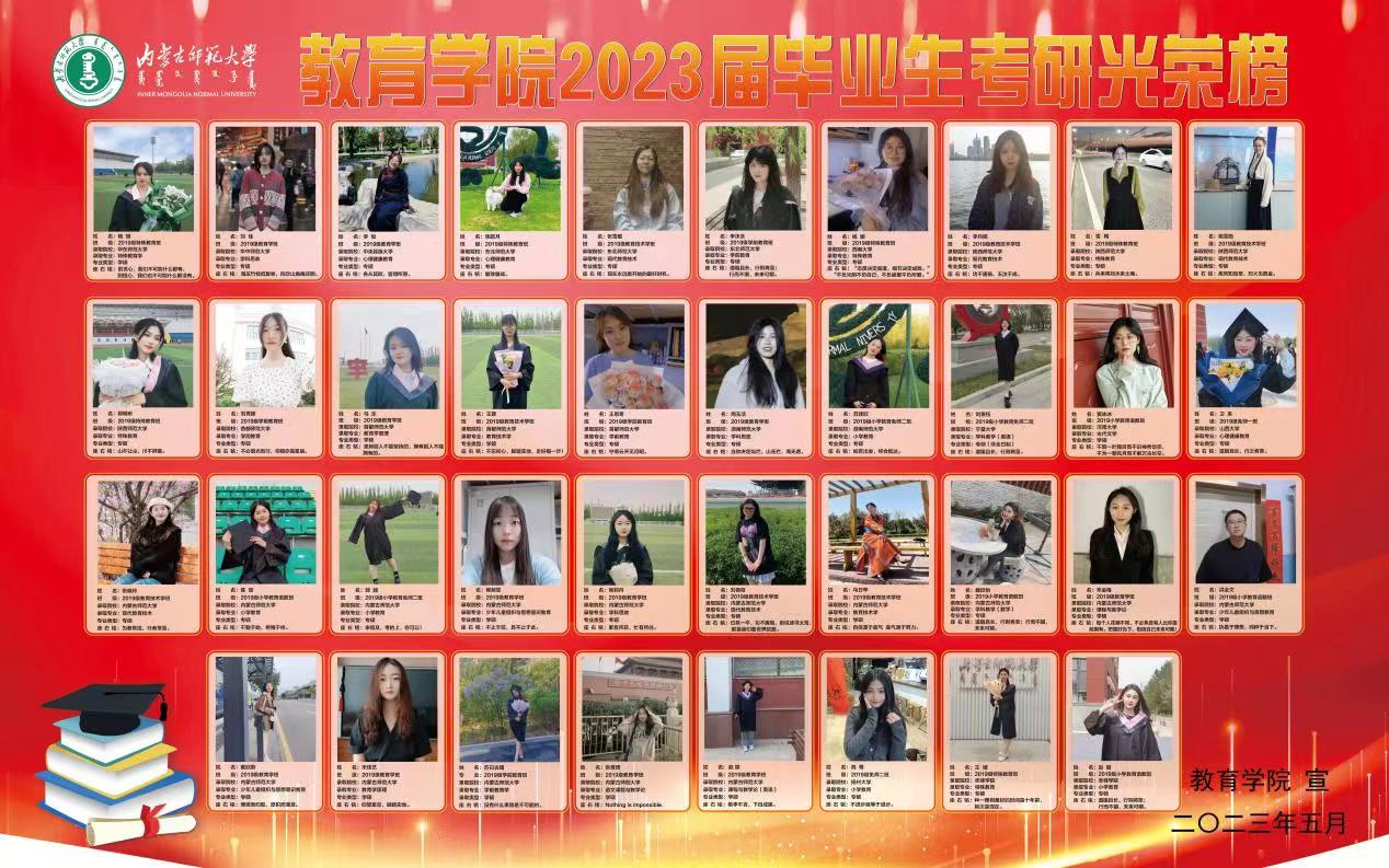 在2023届全国硕士研究生招生考试中,yL23411永利集团2019级学子录取喜报频传,共有38人考入心仪的学校。其中,学硕12人,专硕26人。通过不懈努力,学子们考取了华东师范大学、华中师范大学、中央民族大学、东北师范大学、西南大学、陕西师范大学、首都师范大学、湖南师范大学、yL23411永利等区内外知名高校。