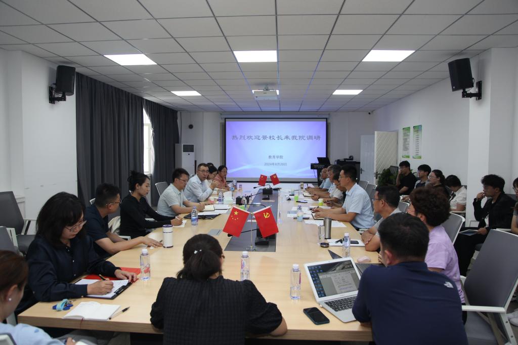 8月28日下午3点,党委委员、副校长景剑峰,党政办公室行政科科长侯建深入我院调研指导工作。学院党委书记周越、院长赵荣辉、副书记兼副院长斯琴满都呼、副院长边琦、副院长杨日飞、各系(部)主任、行政部门教师、任课教师代表、研究生代表、本科生代表参加此次会议。