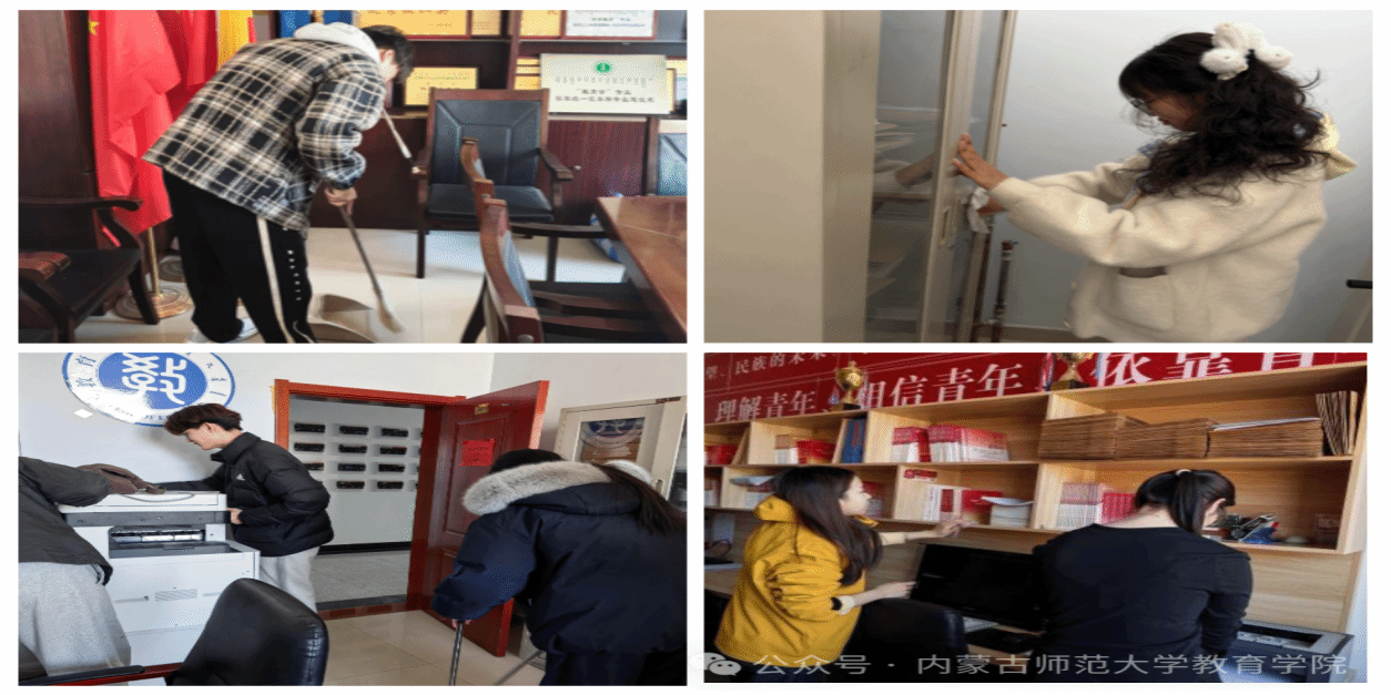 学院开展“我为同学办实事”志愿服务活动。3月5日下午,志愿者们自带清洁工具,明确分工后积极投入行动,从整理楼层公共区域杂物到擦拭桌椅灰尘,从搬运书本课桌到整齐摆放教材,以实际行动美化学院环境,增强集体归属感与奉献精神。